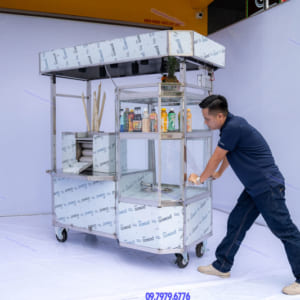 - Sản phẩm với kích thước xe dài 1,6m, cao 2m, mái của xe nước mía 6 lô lục giác được tháo rời, rộng sàn 75cm.