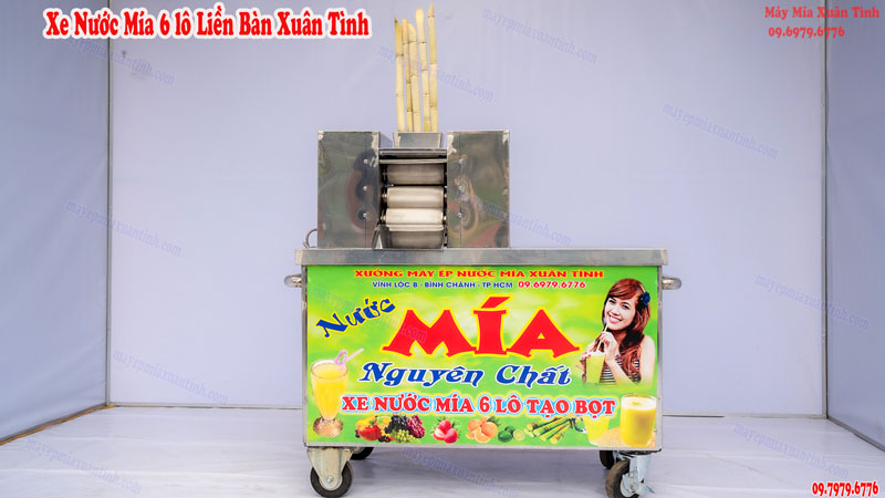 - Giá thành của xe nước mía 6 lô công nghiệp đắt gấp 4-5 lần so với xe nước mía bình thường khác nên Khách hàng chỉ cân nhắc đầu tư khi có lượng khách cực kỳ lớn!.