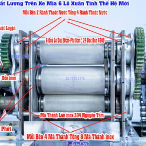 - Xe nước mía 6 lô 1m2 chính hãng được sử dụng 24 bạc đạn 6209 có 24 phớt cao su chắn nước vĩnh cữu 1 đặc điểm mà trên tất cả máy kim cương Xuân Tình đều được trang bị.