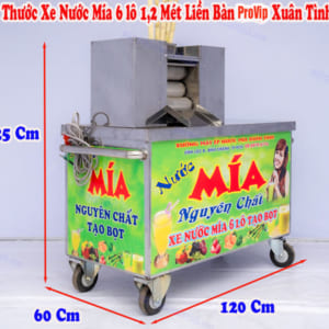 Xe Nước Mía 6 Lô 1m2 liên bàn công nghiệp là dòng máy ép mía cao cấp sử dụng 6 trục ép thép không gỉ, hoạt động với motor lớn và hộp số truyền lực,… Xưởng Xuân Tình với nhiều dòng sản phẩm bền bỉ, mang tới cho khách hàng các loại xe nước mía công nghiệp bảo hành 24 tháng. Áp dụng công nghệ mới trong việc sản xuất xe ép mía, lô ép và vỏ máy được chế tác từ inox (100%).